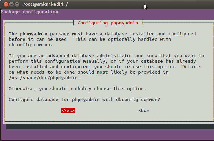 14.Konfigurasi database untuk phpmyadmin dengan dbconfig-common.